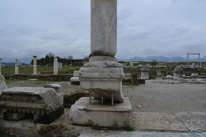 Above the central figures, God the Father is shown seated in semi-circular clouds, making a gesture of blessing. The Holy Spirit, represented as a dove, hovers nearby. God the Father wears a triangular nimbus with the inscription O ON, meaning “The Being” or “The Existing One,” signifying His eternal and divine essence Ephesus Tour Guide.